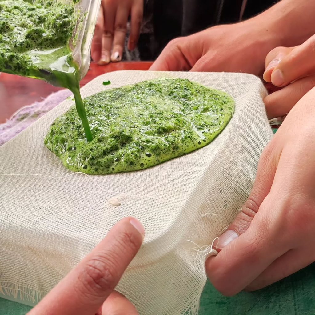 Los pigmentos han sido también una herramienta pedagógica y terapéutica dentro de talleres orientados a metabolizar duelos y pérdidas, donde el trabajo con materia orgánica permite transformar experiencias difíciles en procesos sensibles de elaboración colectiva. A través de la manipulación de colorantes naturales se abren espacios para analizar críticamente nuestras prácticas artísticas y reconfigurarlas hacia modelos regenerativos y no opresivos, que priorizan el cuidado, la escucha y la relación ética con los territorios y los cuerpos. En este contexto, la construcción de estructuras vegetales y superficies vivas se convierte en una metodología que integra creación, reparación y pensamiento ecológico, entendiendo el arte como una práctica que no solo representa, sino que participa activamente en la restauración de vínculos entre comunidad, memoria y entorno natural.