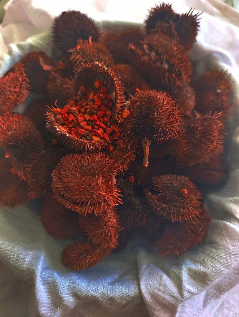 Desde los inicios de mi carrera he trabajado con pigmentos vegetales y minerales —desde las tierras rojas y los pigmentos extraídos directamente de la tierra— no solo como un campo de desarrollo técnico, sino como un medio para vincular el cuerpo con los conceptos que investigo. Mi práctica recorre procesos como la antotipia y la fotografía con pigmentos naturales, incorporando materiales como el achiote y la henna como superficies vivas que activan una relación sensorial entre materia, imagen y corporalidad. Actualmente profundizo en el trabajo con papó, índigo del Pacífico y achiote o Bixa, (una planta que proviene del territorio del que mi familia proviene, previamente territorio Indígena Panche), técnicas que desarrollo en diálogo con maestras sabedoras de mi territorio, con quienes sostengo procesos de investigación y transmisión de conocimiento que fortalecen una práctica situada, colectiva y arraigada en la memoria material de los pigmentos.